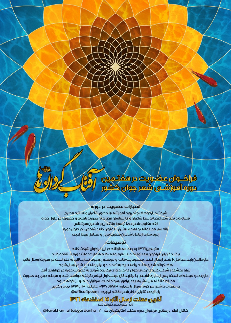 کانال اطلاع رسانی فراخوان دوره هفتم آفتابگردان ها: t.me/farakhan_aftabgardanha_7